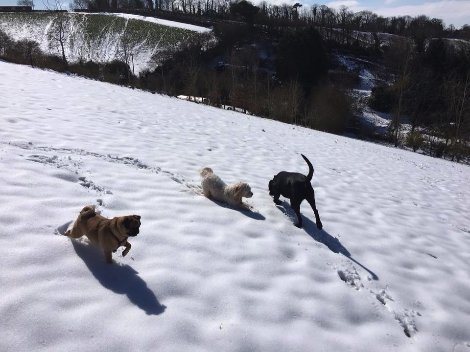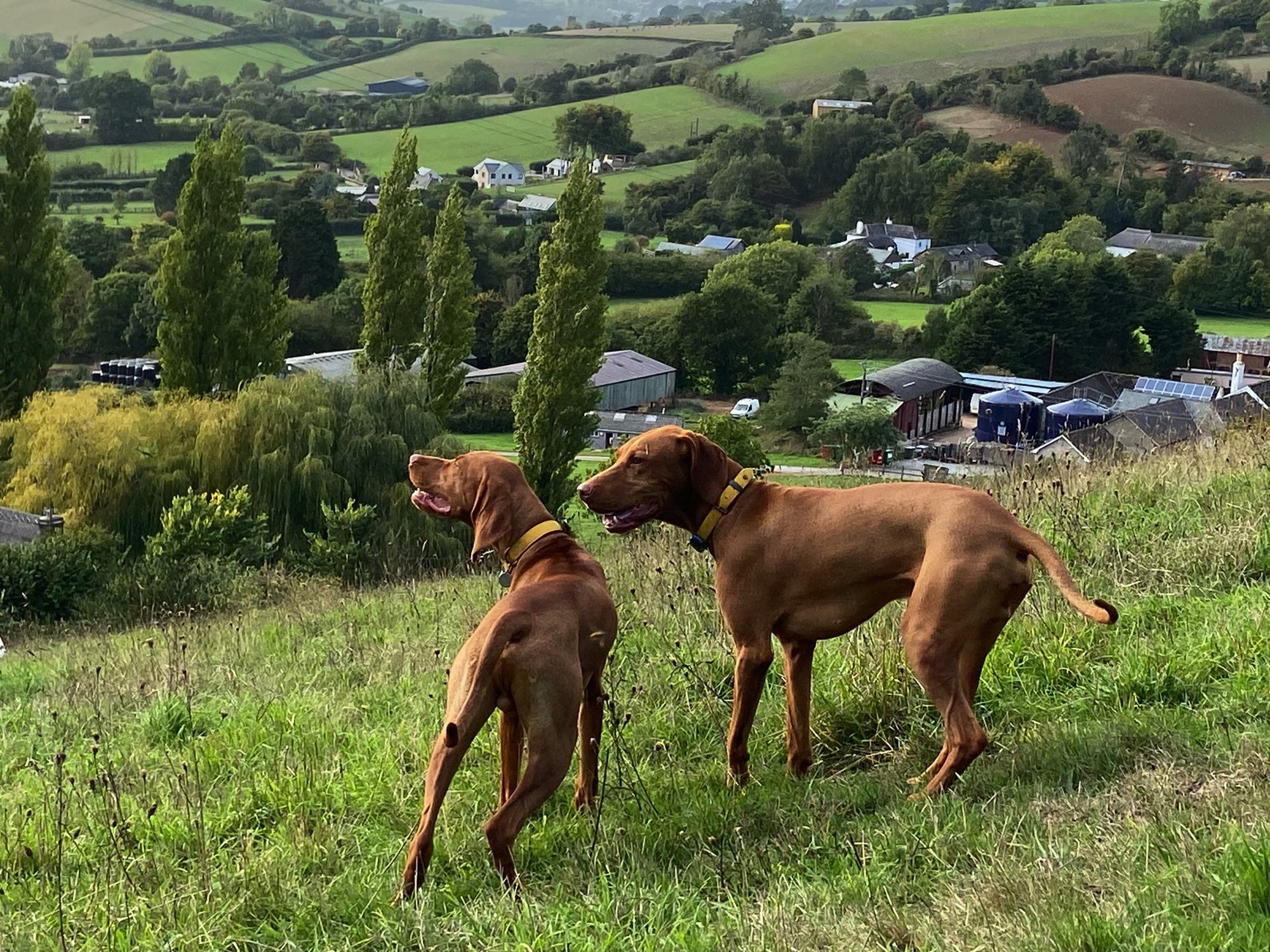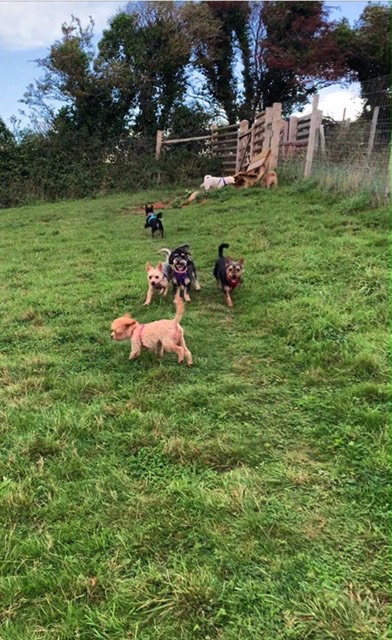 Two Paddocks, set in a beautiful valley with views across to Dartmoor where the only noise comes from the Buzzards and other birds flying overhead. It is stunning! I completely understand the need for a secure field as it allows my 3 rescue dogs (all of whom lived miserable lives with Hunters) and my Day Care dogs to live their best lives, running freely and looking for rabbits with no worries about putting them in situations they would find scary or wondering if they will ever come back!